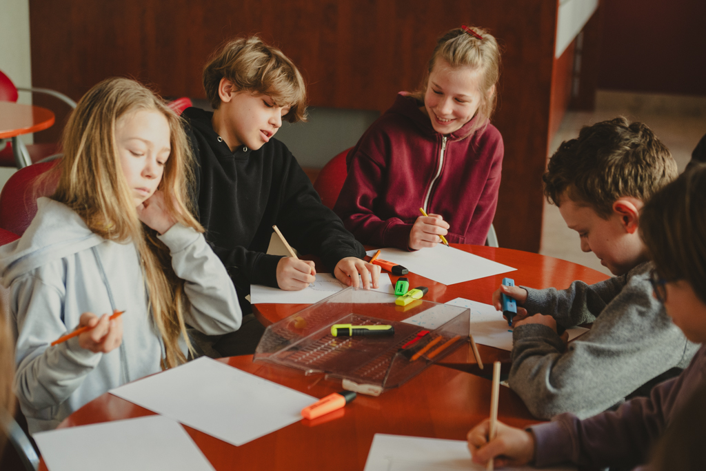 Warsztat Ryby pod opieką artystyczną Kacpra Matuli (28.05.2025) z udziałem uczennic i uczniów Szkoły Podstawowej nr 271 im. 11 Listopada w Warszawie. Fot. Marta Ankiersztejn