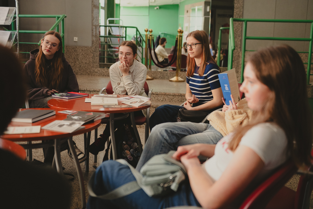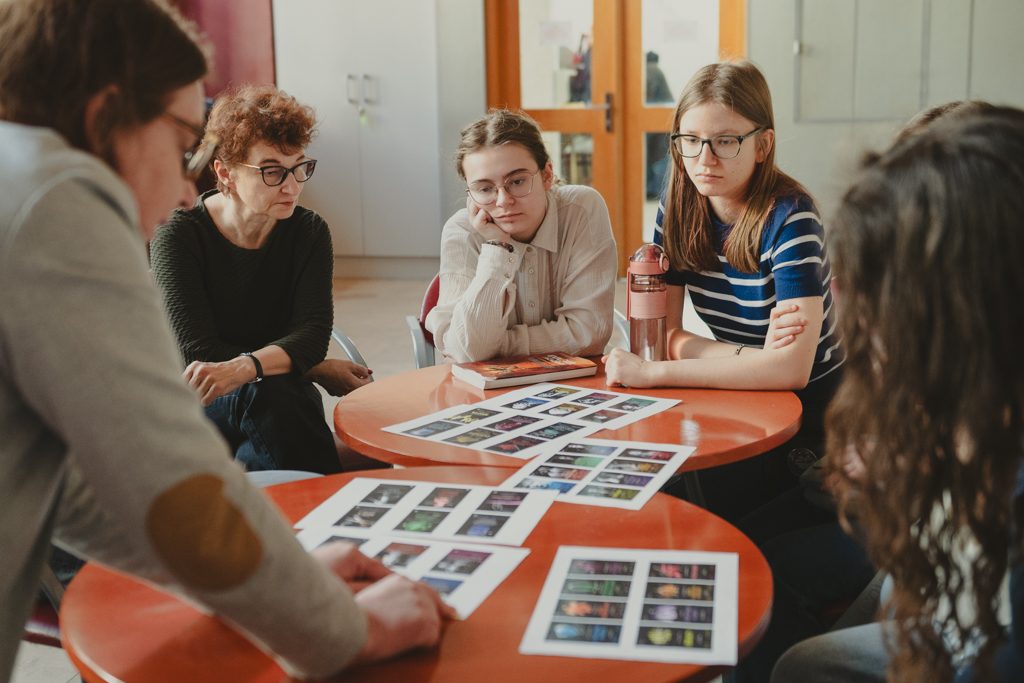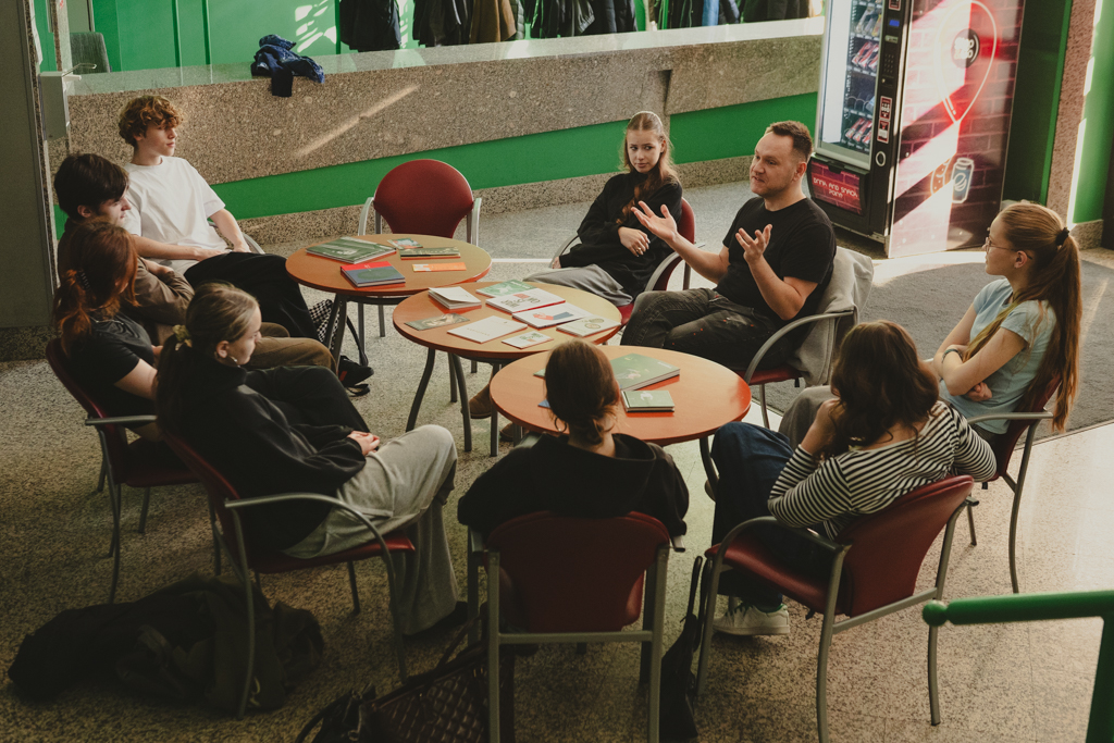 Warsztaty „Promujemy, zapowiadamy, opisujemy, sprzedajemy” dla uczennic i uczniów XLIX Liceum Ogólnokształcącego im. Johanna Wolfganga Goethego. Fot. Marta Ankiersztejn