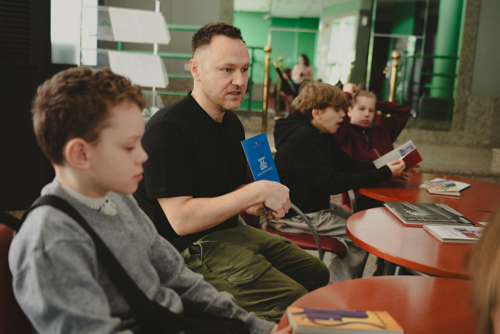 Warsztat Ryby pod opieką artystyczną Kacpra Matuli (28.05.2025) z udziałem uczennic i uczniów Szkoły Podstawowej nr 271 im. 11 Listopada w Warszawie. Fot. Marta Ankiersztejn