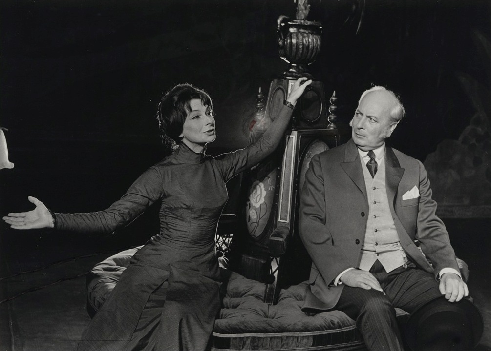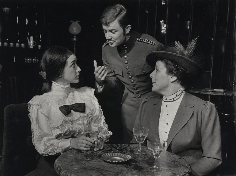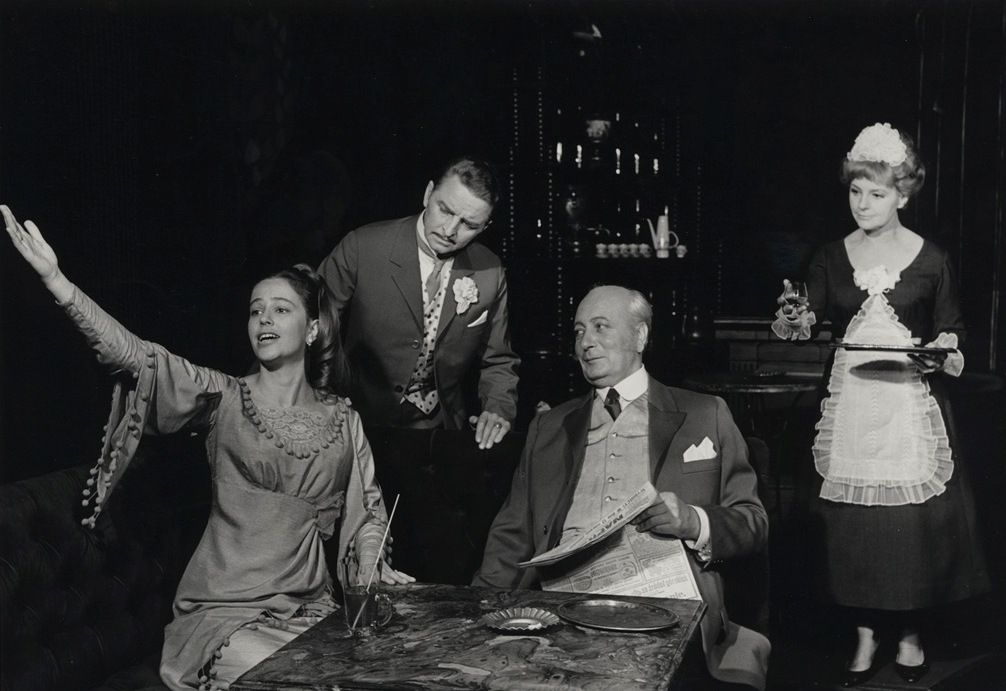 Hanna Zembrzuska (Ewelina Corelli), Igor Śmiałowski (Narcyz), Zdzisław Mrożewski (Dyrektor Teatru), Barbara Fijewska (Bufetowa). Fot. Franciszek Myszkowski / Archiwum Artystyczne Teatru Narodowego
