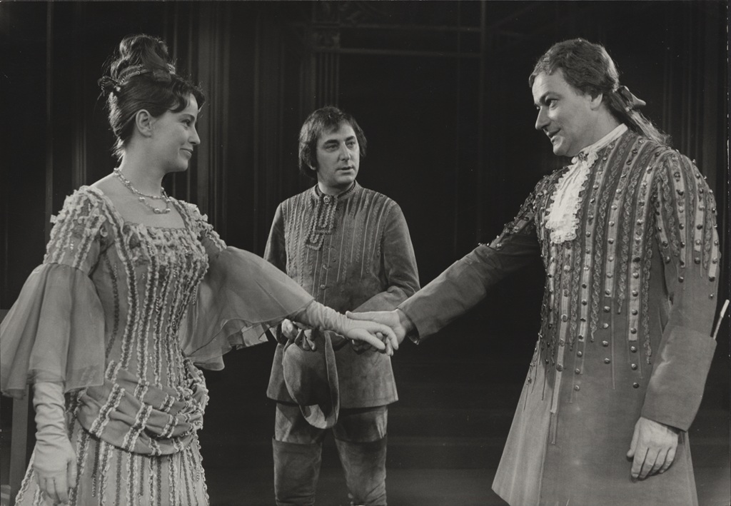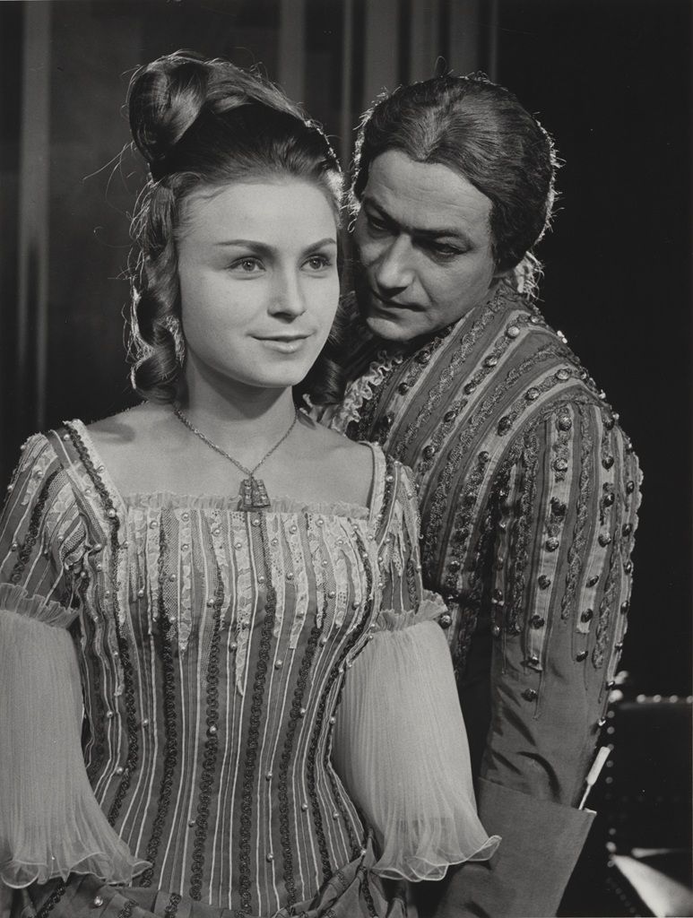 Na pierwszym planie: Gustaw Holoubek (Alcest), Ewa Krasnodębska (Celimena). Fot. Franciszek Myszkowski / Archiwum Artystyczne Teatru Narodowego