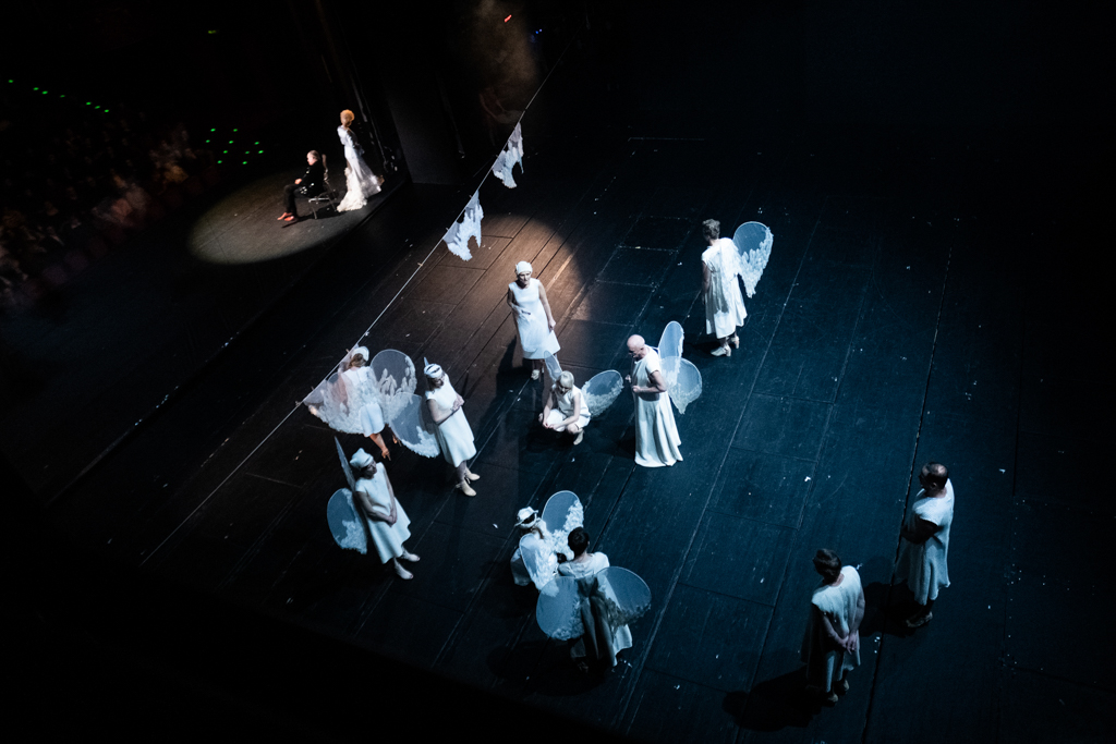 Danuta Stenka (Archanioł), Marcin Hycnar (Kordian I), Mariusz Bonaszewski (Szatan) w Kordianie Juliusza Słowackiego w reżyserii Jana Englerta. Fot. Tomasz Urbanek / East News